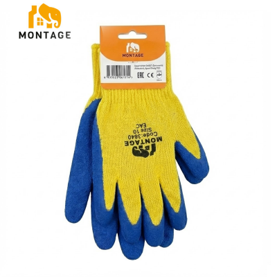 Ձեռնոց սինթետիկ թելից լատեքսապատ, դեղին-կապույտ MONTAGE 53գր, N10 կախիչով