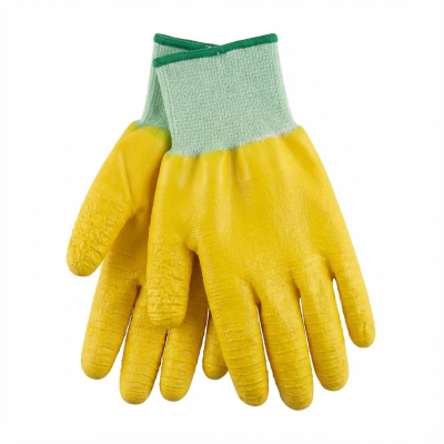 Ձեռնոց սինթետիկ թելից լատեքսապատ ծալքավոր ջրակայուն, դեղին 65գր, N10