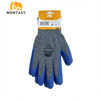 Ձեռնոց բամբակից լատեքսապատ, մոխրագույն-կապույտ MONTAGE 90գր, N10 կախիչով