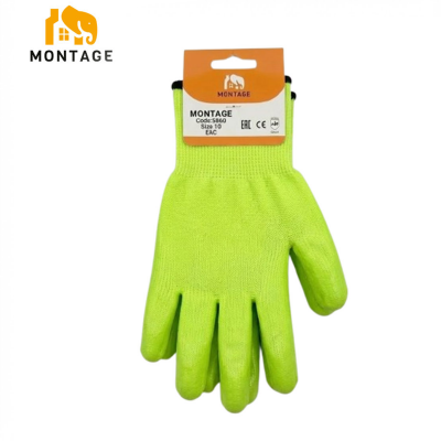Ձեռնոց սինթետիկ թելից նիտրիլապատ, կանաչ MONTAGE 38գր, N10 կախիչով