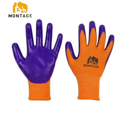 Ձեռնոց սինթետիկ թելից նիտրիլապատ, գազարագույն մանուշակագույն MONTAGE 45գր, N10